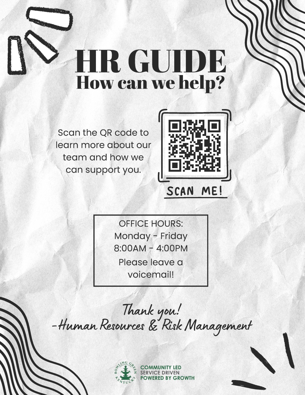 Not sure who to contact in Human Resources or Risk Management? Scan the QR code below to view our new HR Guide: our one-stop resource for finding the right person for the right question.