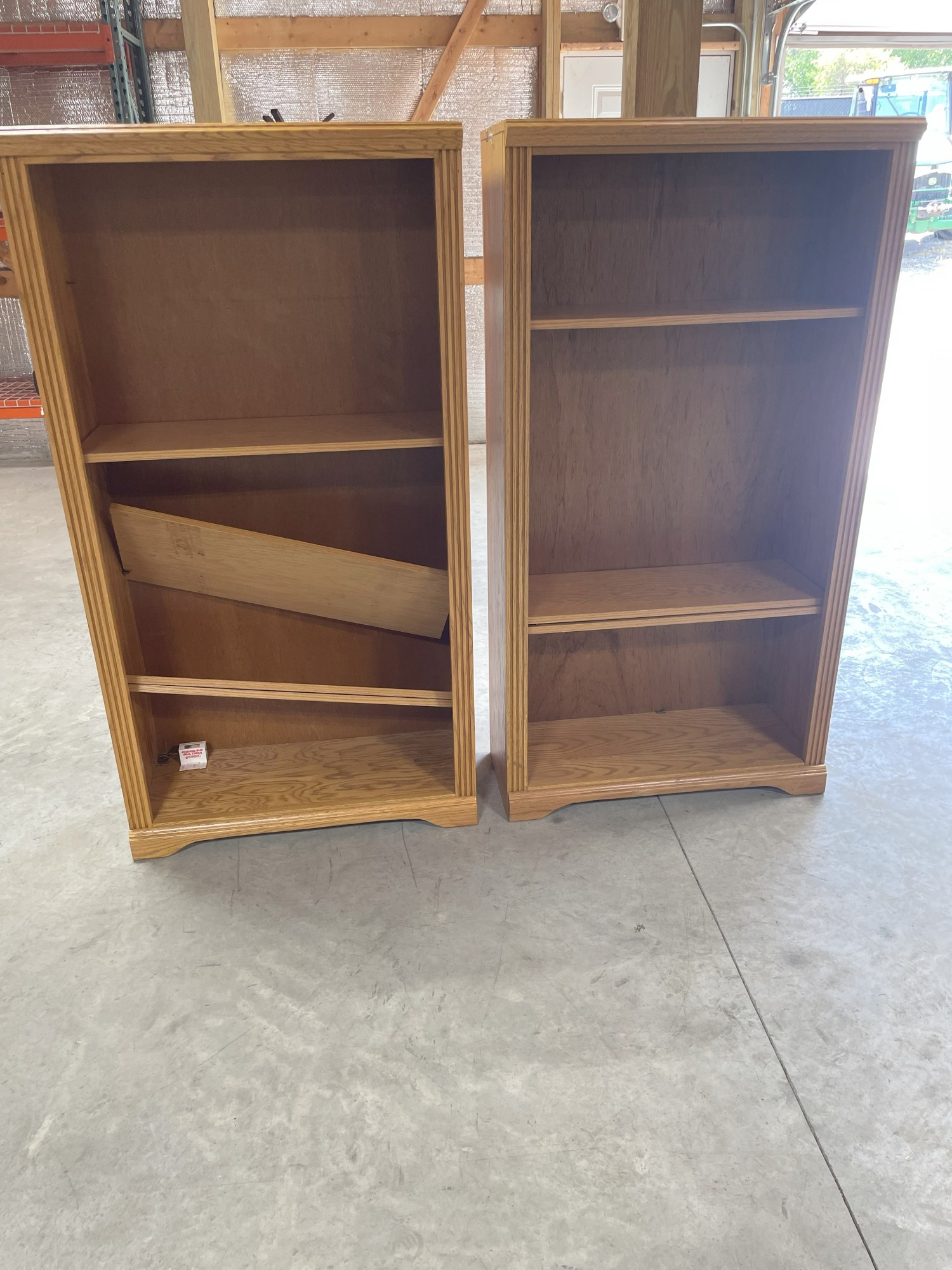 Can claim one or both. 32"W X 13.75"D X 60"H each. Shelves just need to be set back in.