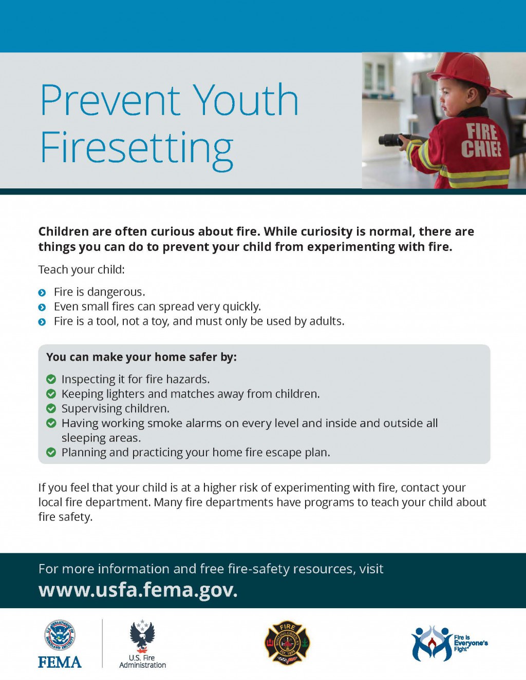 Home fires can start and spread quickly. The information below will help keep your children safe.